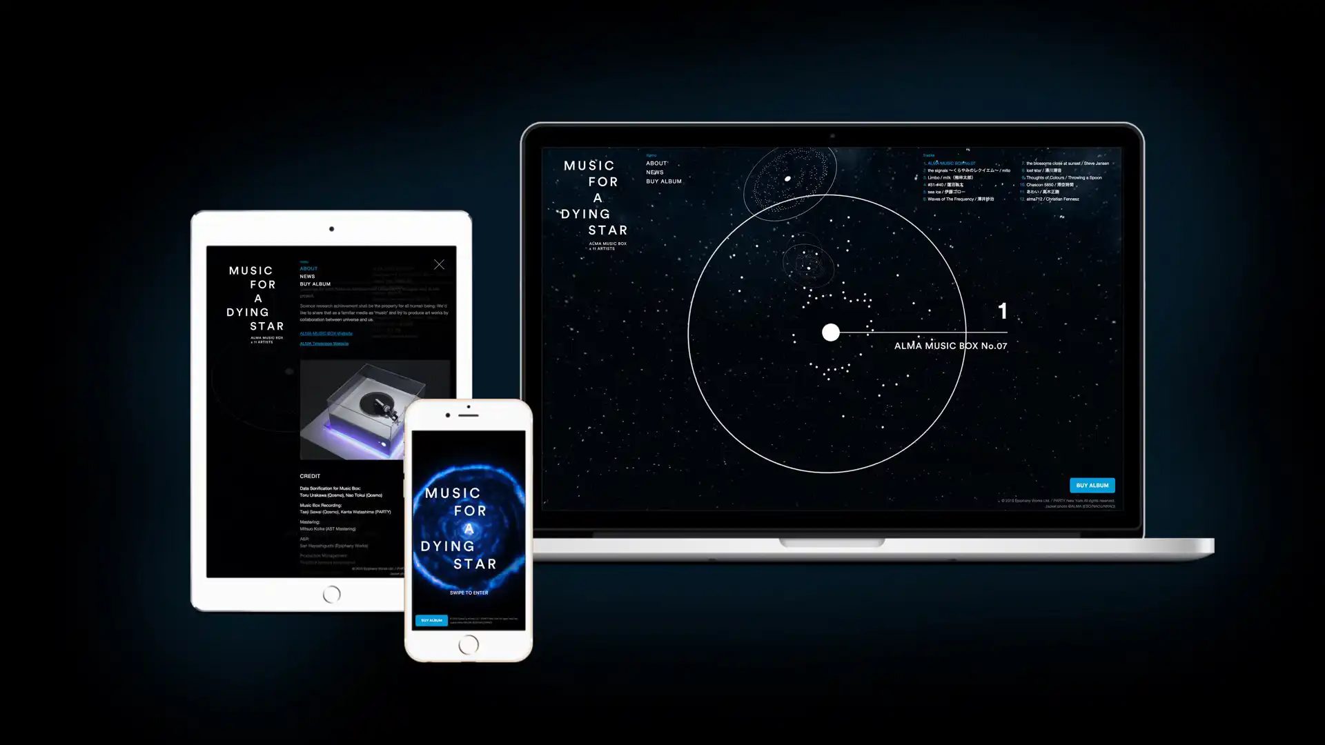 The ALMA Music Box exhibition’s success prompted the production of the crowd-funded compilation CD “Music for a Dying Star”.
