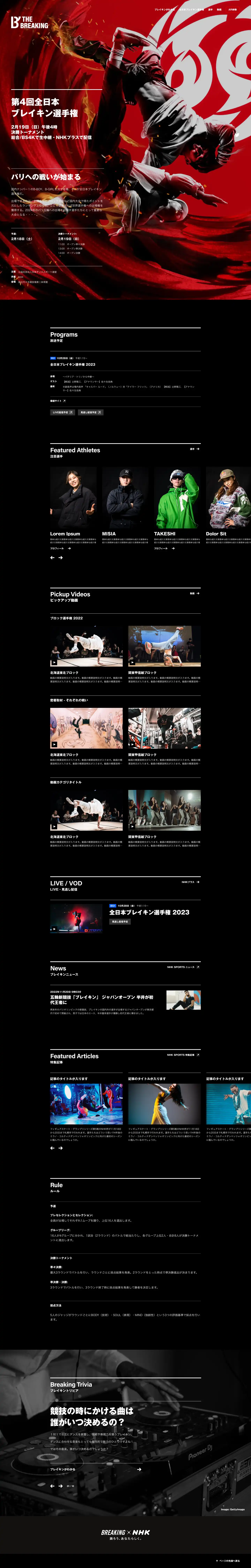 Just in time for the "4th All Japan Breakdance Championships" in February 2023, the site is packed with exciting features, including basic information on breakdance, real-time updates on competition results, and AR content that brings the moves of Japan's top breakdancers to life.