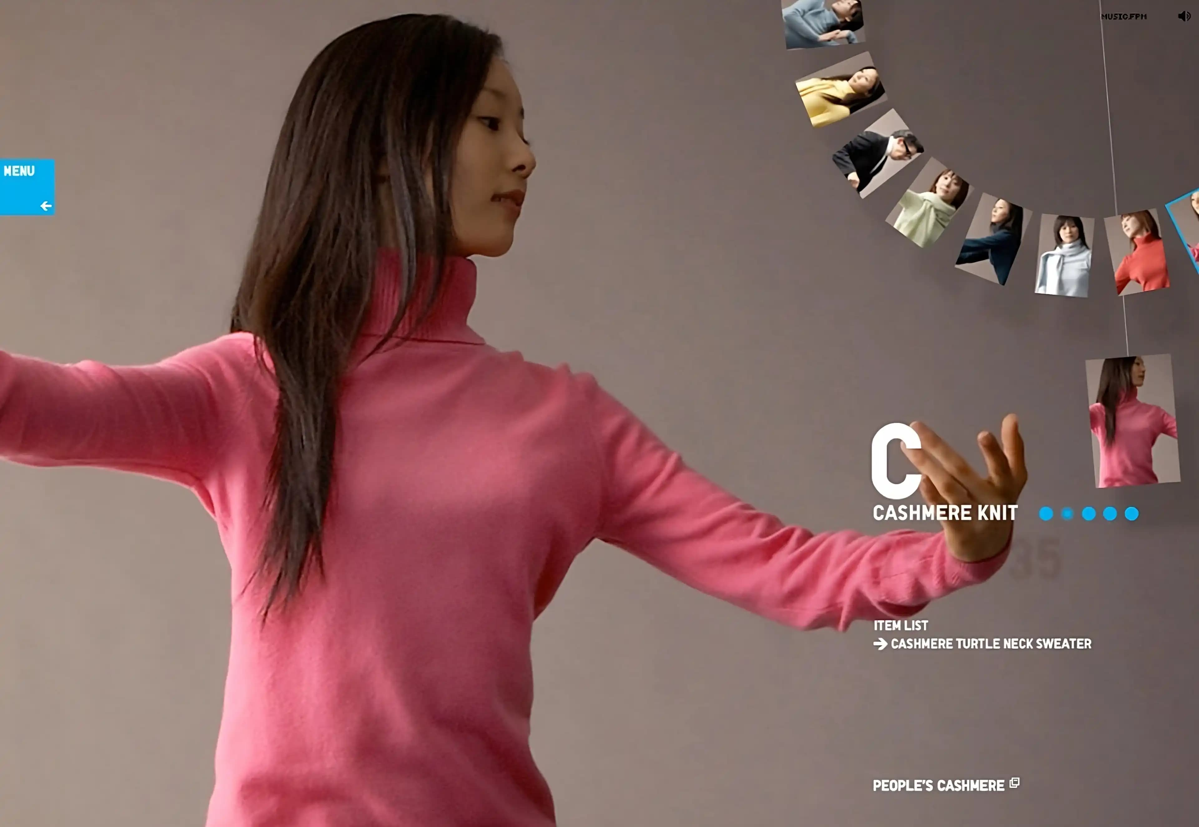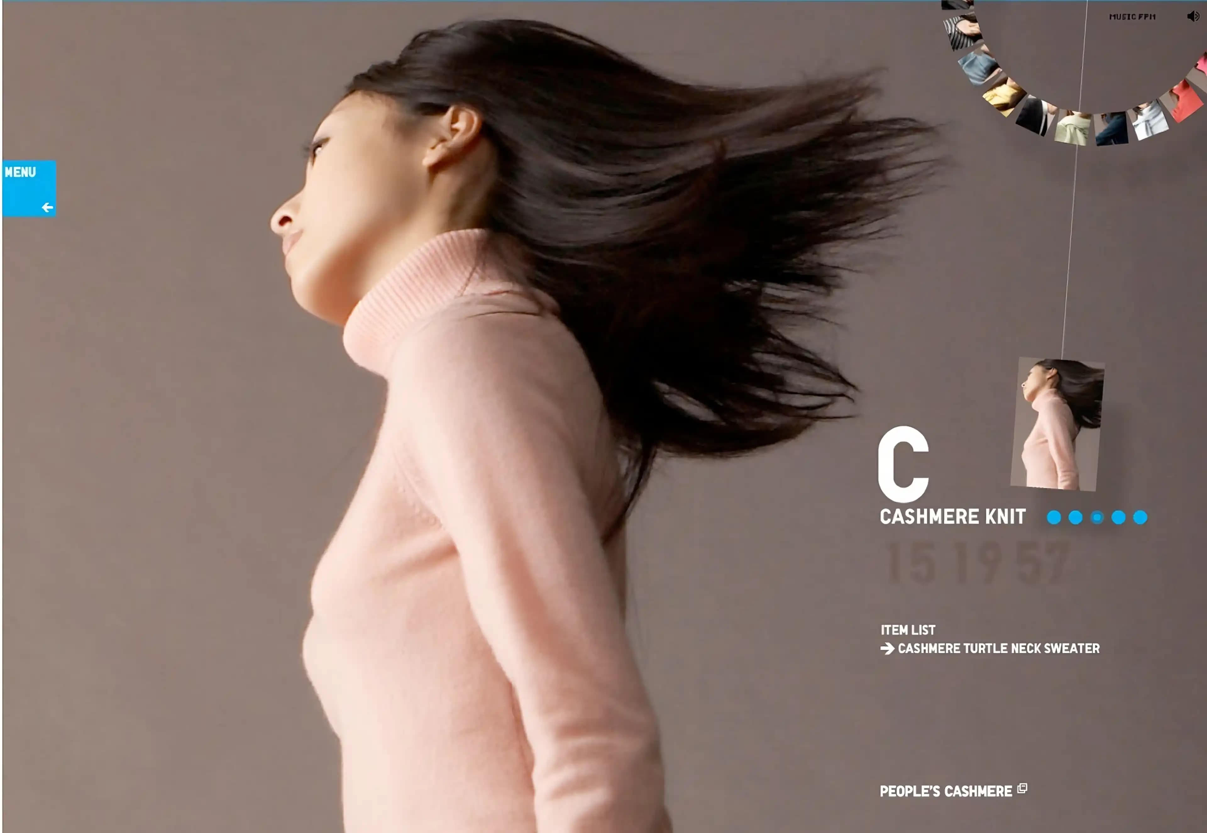 During the second phase of the campaign, Cashmere knit was featured, and all video footage was refreshed while a new catalog page was added. I was asked to work with the team to design and create Flash interactive elements for the catalog section of phase 2.