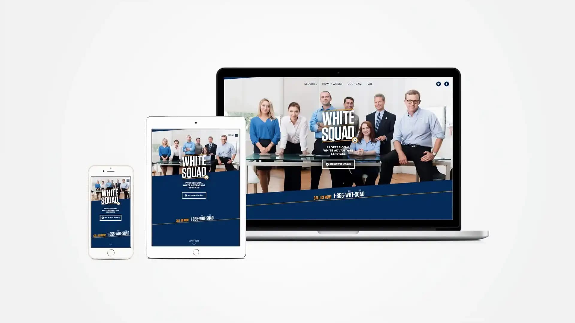 In addition to the film, a fully realized website accompanied the TV commercial, providing greater depth and detail. Twitter and Facebook accounts helped round out the fictional world of White Squad, and a working, automated toll-free phone number completed the illusion.