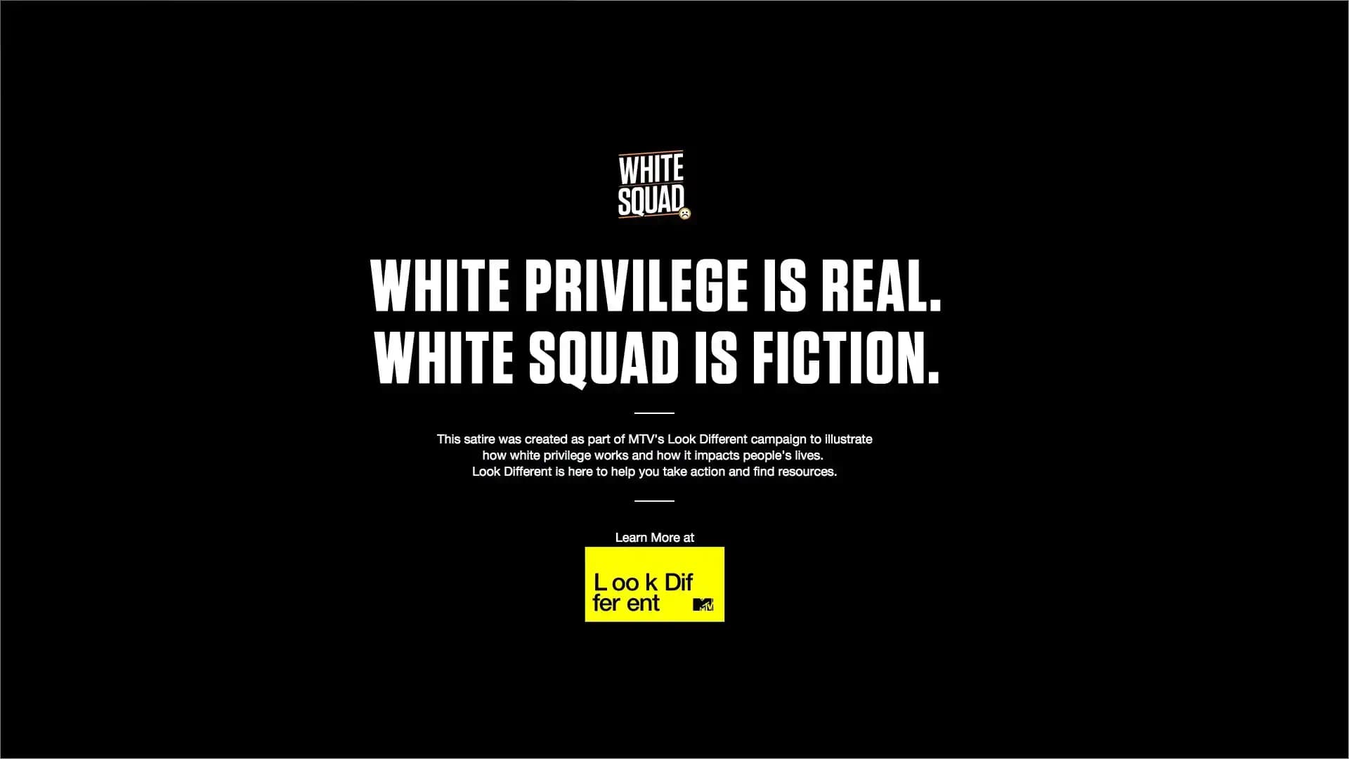“White Squad” was part of MTV’s “Look Different” PSA campaign, created bring the younger generation’s attention to the existence of White Privilege in the USA.